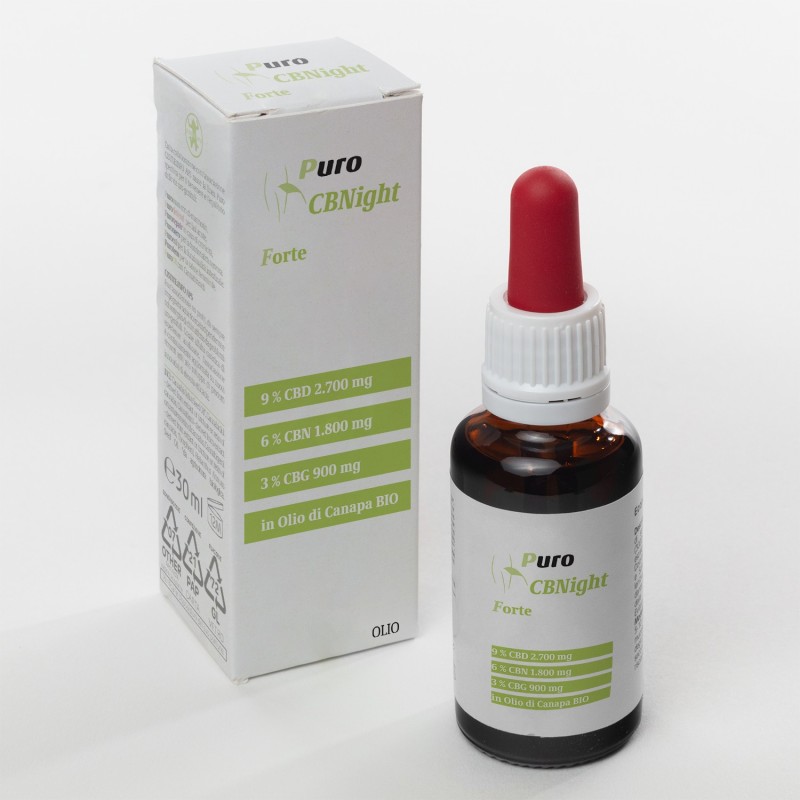 Puro® CBNight Forte ist ein natürlicher Pflanzenextrakt – verstärkt mit CBD-Isolat, CBN-Isolat und CBG-Isolat und verdünnt in BIO-zertifiziertem Hanfsamenöl.