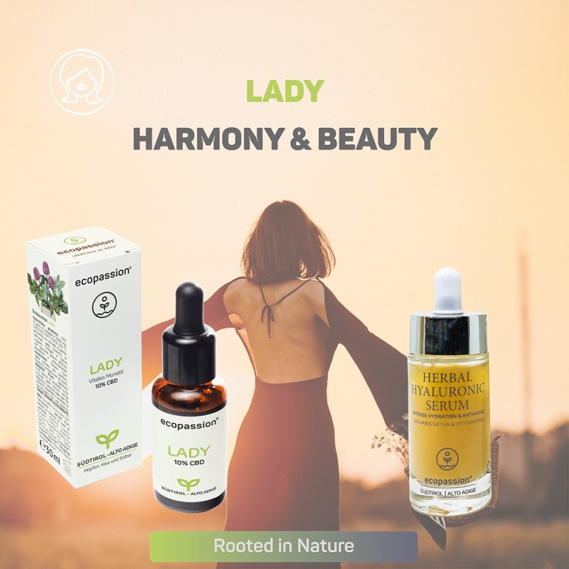 ecopassion® LADY with CBD, hops, red clover, and sage – soothing plant power to support your inner balance.
